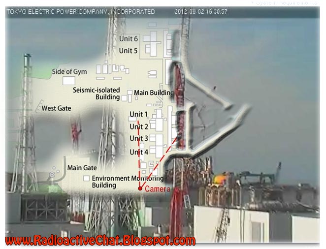 Now the camera angle like I told you earlier is different now from what it was when the livecam first was put into place 2011. But we can still see all the reactor units and cranes working on the site. To explain the map, Unit 4 is in the right corner of the screen and we can see part of Unit 1 way back with Unit 2 blocking most of the view (Unit 1 is the white reactor unit because of the tent they put up).