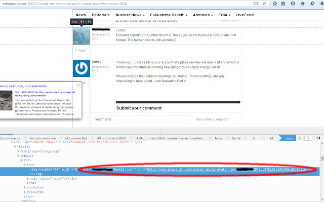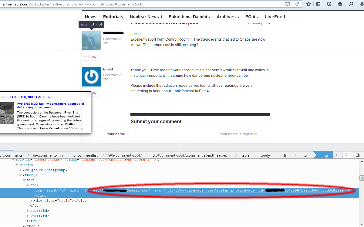 | Example of gmail address of commenter displayed in source code on Enformable |